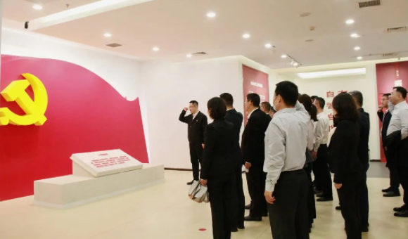 參觀結(jié)束后,在劉釗同志的帶領(lǐng)下,全體黨員重溫了入黨誓詞。